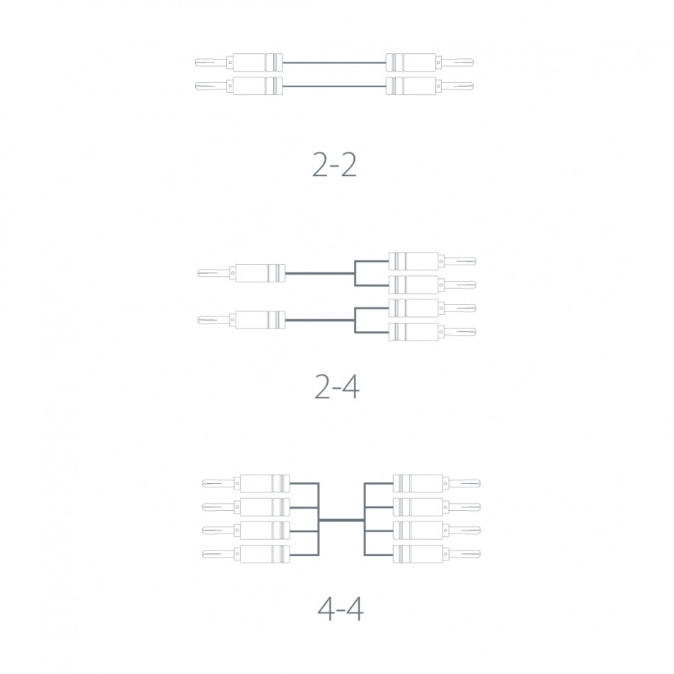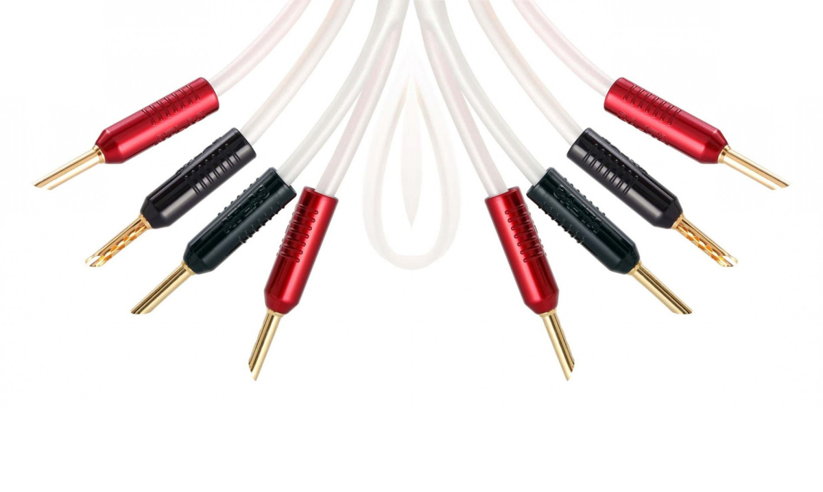 Notera att den här upplagan av högtalarkabeln är avsedd för bi-amp koppling, främst då med en bioförstärkare. Man har alltså fyra bananpluggar per ände av kabeln. I en bioförstärkare med minst sju förstärkarkanaler kan man vanligtvis addressera om "surround back" till "front" och därmed få fyra förstärkarkanaler som driver fronthögtalarna istället för två.