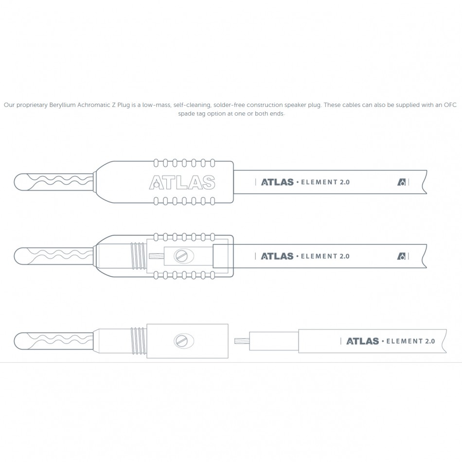 Den mest spännande och intressanta nyheten med den här kabeln är att Atlas introducerar sin nya plugg döpt till Achromatic. Det är en vidareutveckling från tidigare pluggar. Den nya generationen finnes på merpart av deras kablar.