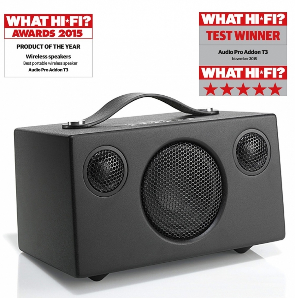 Den svenska högtalarexperten Audio Pro har en historik som sträcker sig ända tillbaka till 70-talet. Addon T3 är deras första högtalare med batterifunktion, vilket gör modellen ypperlig att ta med sig på affärsresan eller nöjesutflykten. Avancerad ljudteknologi och akustisk erfarenhet ger en kompakt högtalare med enkelt handhavande och massor av musikalisk njutning. Addon T3 har en fantastisk potential som bidrar till att dess lilla format lurar dina förstaintryck. Låt musiken flöda och det är risk att du tappat hakan ner mot golvet.