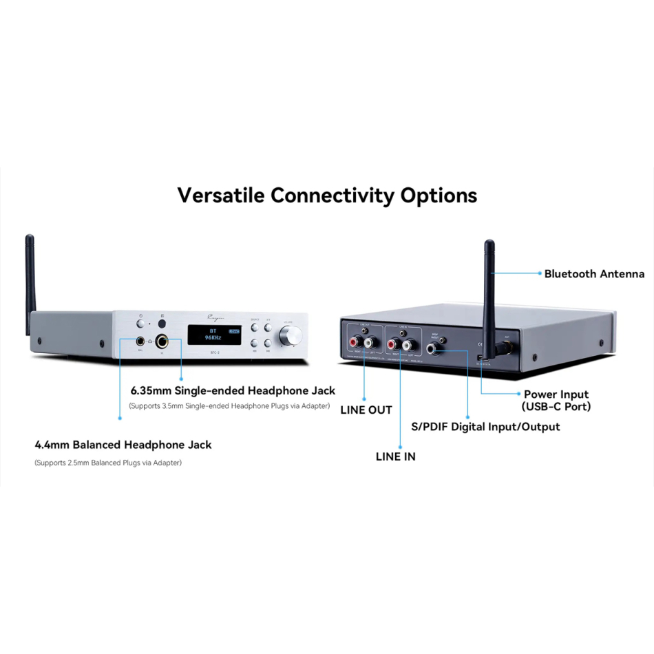 Med inbyggd Qualcomm QCC5125 Bluetooth-SoC och stöd för moderna högupplösta kodekar som LDAC och aptX HD blir det enkelt att streama musik trådlöst från telefon, surfplatta eller dator med mycket hög kvalitet, som är upp till 96 kHz/24-bitar via Bluetooth. Via den coaxiala kabelanslutningen stöds upplösningar upp till 192 kHz/24-bitar.