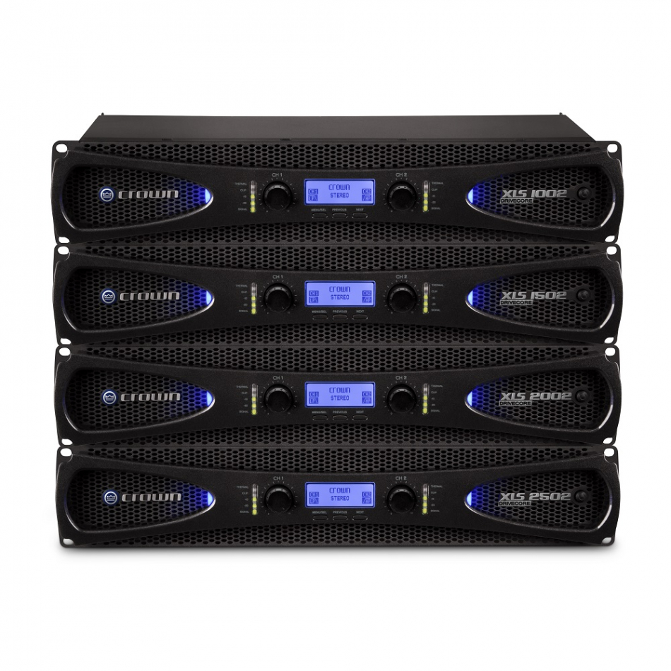 Crown XLS-2002 är ett kraftfullt slutsteg för stereobruk, som i sin senaste generation fått en makeover med en mer elegant design, en LCD-display som är tre gånger större samt med en DSP med bättre kapacitet. Konstruktionen är baserad kring deras patenterad