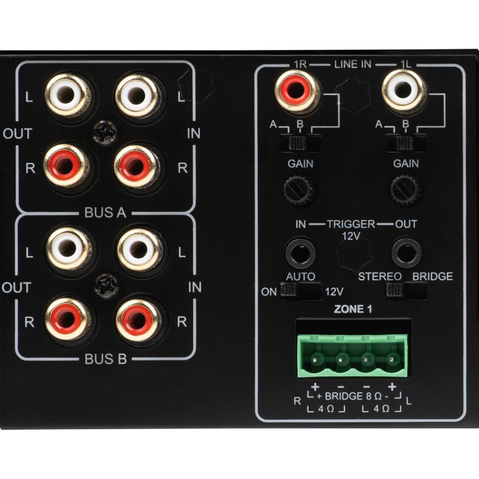 - BUS-utgångar om man vill bygga ut med aktiv subwoofer eller fler MA-steg