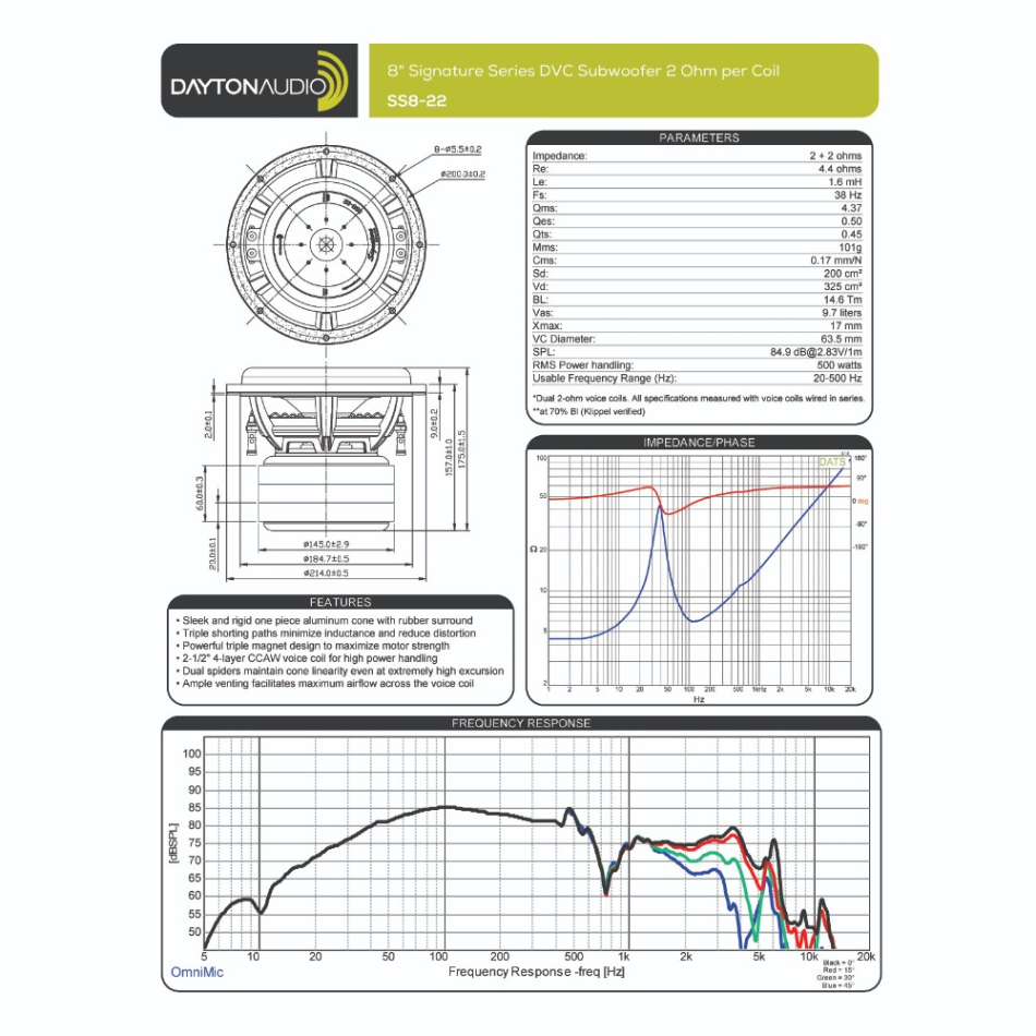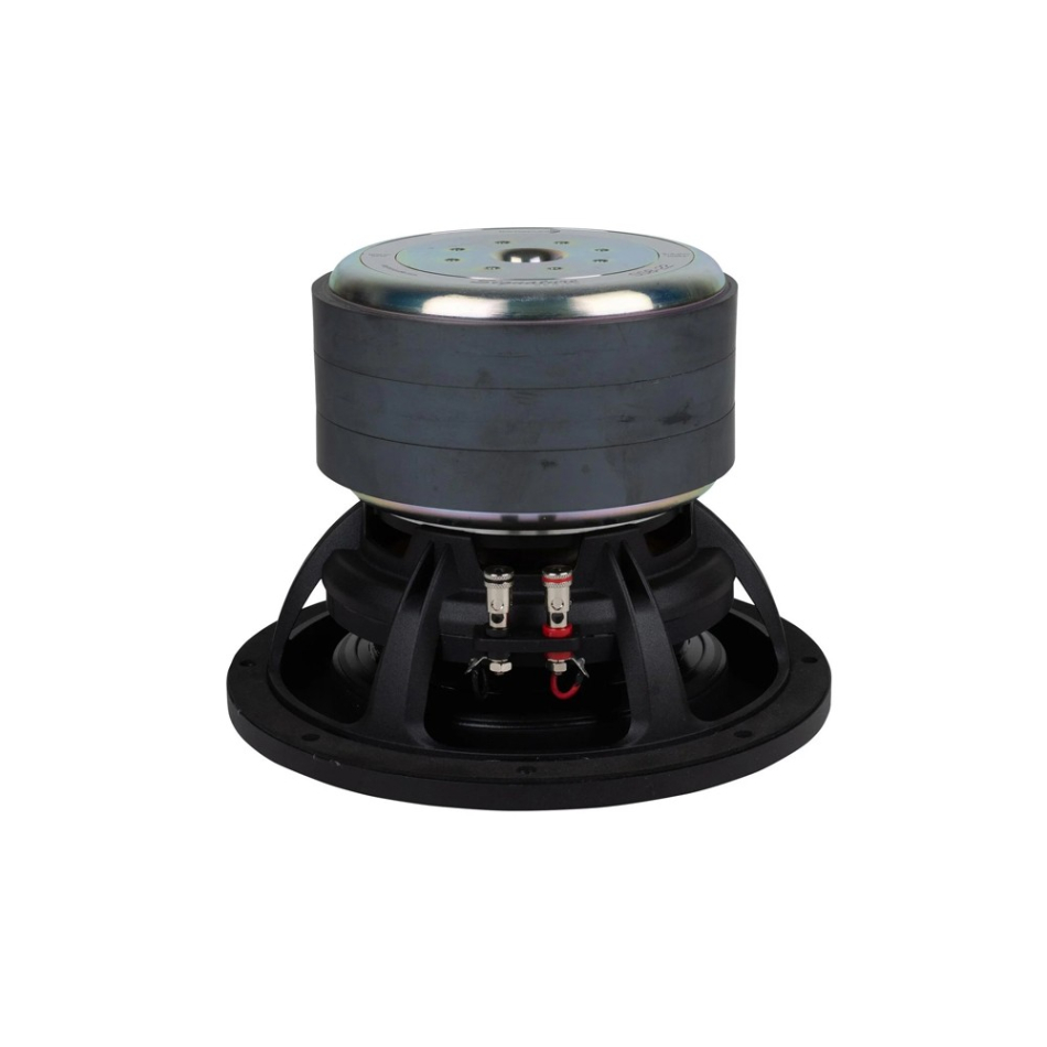 Den tekniska kärnan i SS8-22 sitter i dess motor och upphängning. Dayton Audio använder här en kraftfull trippelmagnetkonstruktion, tre kortslutningsvägar för att minska induktans och distorsion, samt dubbla spindlar som hjälper konen att röra sig mer linjärt när slaglängden blir stor. Tillsammans med en 63,5 mm talspole och riklig ventilation över talspolen får man en konstruktion som inte bara tål effekt, utan också är byggd för att hålla ordning på rörelsen när elementet pressas. Just det märks ofta som bättre definition i de lägsta registren, renare anslag och mindre tendens till att basen blir grumlig när ljudtrycket stiger. Det är en lösning som ger SS8-22 ett mer påkostat och genomarbetat uttryck än vad man normalt väntar sig i den här storleksklassen.