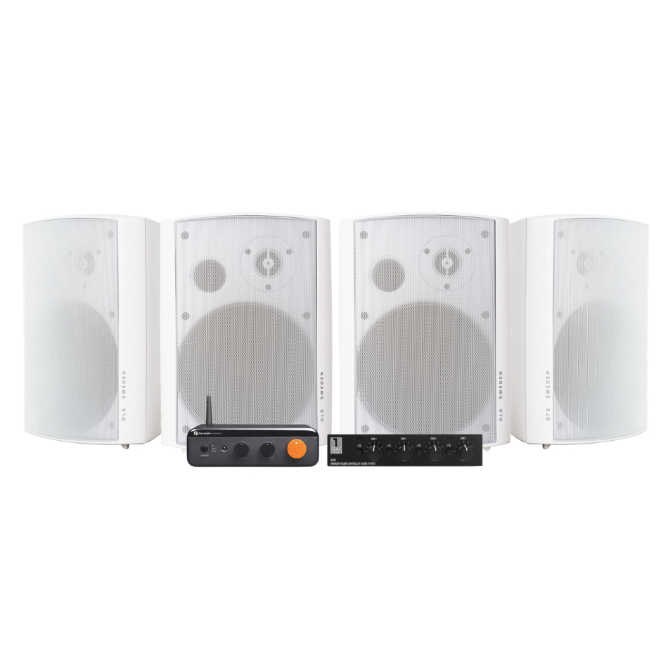 Detta är ett typexempel på en multiroom-lösning, som kan skräddarsys efter eget önskemål. Du kanske önskar ha färre/fler högtalare eller ett annat val av förstärkare eller en annan kombination av högtalare? För att få ett uträknat paketpris på detta, ber vi dig att kontakta oss på telefon eller mail.