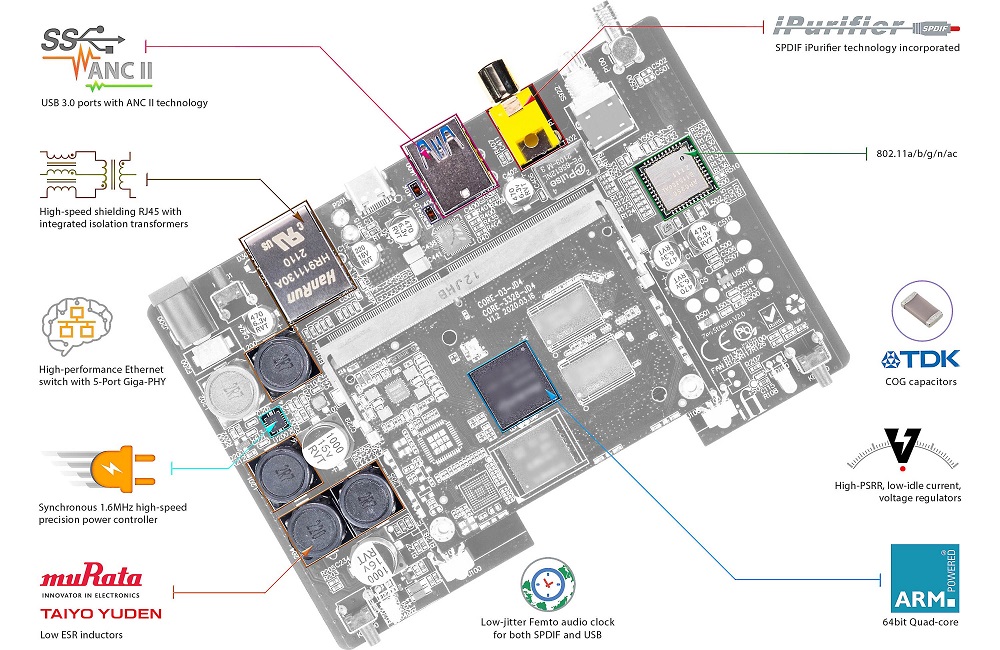 Hjärtat - eller ska man säga hjärnan - i konstruktionen av Zen Stream är ARM Cortex fyrkärniga och kraftfulla 64-bitars processor, som hanterar ljudsignalen med yttersta precision på ett blixtsnabbt vis. I övrigt finner vi högklassig och speciellt selekterade komponenter, som alla har sitt syfte - att leverera ett ljud med högsta detaljupplösning.