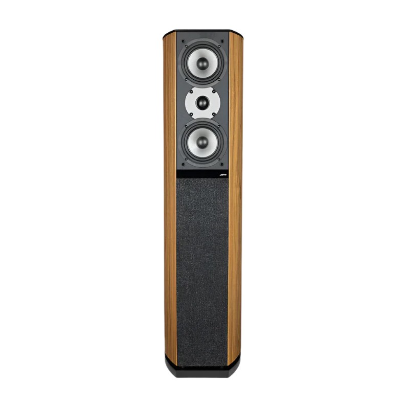 D590 arbetar med dubbla 5.25" mellanregister och en 1" domediskant med vågledare, en kombination som ger högtalaren både skala och precision. Mellanregistren ansvarar för mycket av musikens mänskliga närvaro, från röster och akustiska instrument till gitarrer, piano och blåsinstrument. Glasfiberkonerna bidrar med styvhet och snabb respons, vilket hjälper återgivningen att kännas ren och artikulerad även när musiken blir tät. Diskanten kompletteras av Jamos Anti Diffraction Waveguide och Decoupled Tweeter Technology, lösningar som är tänkta att ge bättre spridning, minska oönskade vibrationer och skapa en mer fokuserad topp. Tillsammans ger det en ljudbild där detaljer får luft och placering, utan att helheten behöver bli analytisk eller tunn. D590 låter som en högtalare byggd för långa lyssningspass, med fokus på balans, klarhet och musikalisk sammanhållning.