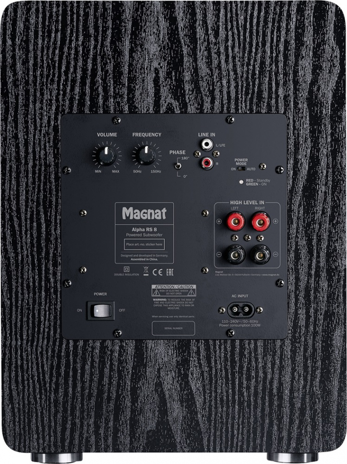 Magnat Alpha RS8 är en mycket musikalisk och välspelande baslåda, som blir en utsökt matchning tillsammans med ett par förstklassiga stativhögtalare där allting är uppställt i ett mindre rum. Ett tilltaget och Klippel-optimerat 8" element spelar tillsammans med ett 80 Watt starkt klass D-steg. På frontstycket sitter det dubbla Airflex-basportar som bidrra till den rena och snabba återgivningen, som är smått unik i klassen! Hela kabinettet vilar på fyra vibrationsdämpande fötter.