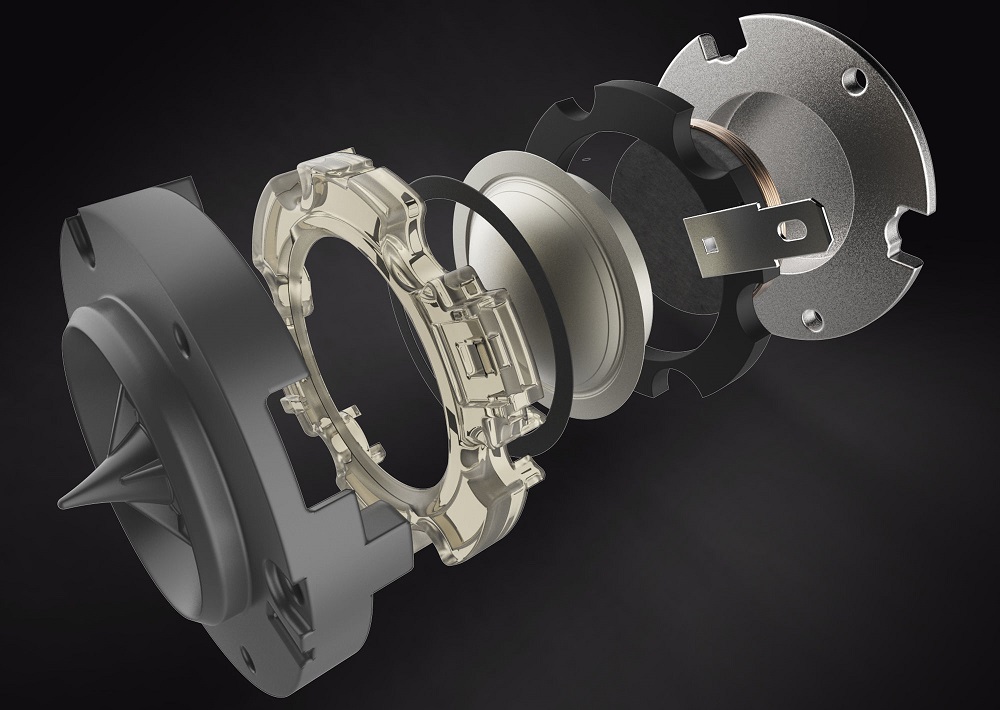 - Hornladdad Tractrix-diskant med aluminium-membran och LTS-upphängning