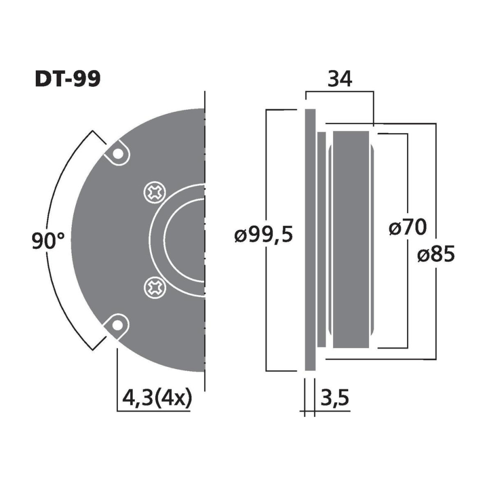 Monacor beskriver DT-99 som lämplig både för ersättningsändamål och hifi-applikationer, och just det gör modellen extra användbar. Med en ytterdiameter på 99.5 mm, monteringsutskärning på 85 mm och ett inbyggnadsdjup på 34 mm passar den i många konstruktioner där man vill uppgradera eller ersätta en äldre diskant utan omfattande modifiering av baffeln. Magnetdiametern på 70 mm och talspolediametern på 25 mm visar också att det här är en genomtänkt klassisk konstruktion i kompakt format. För den som renoverar äldre högtalare eller bygger nytt med beprövade dimensioner är DT-99 därför ett praktiskt och tilltalande val.