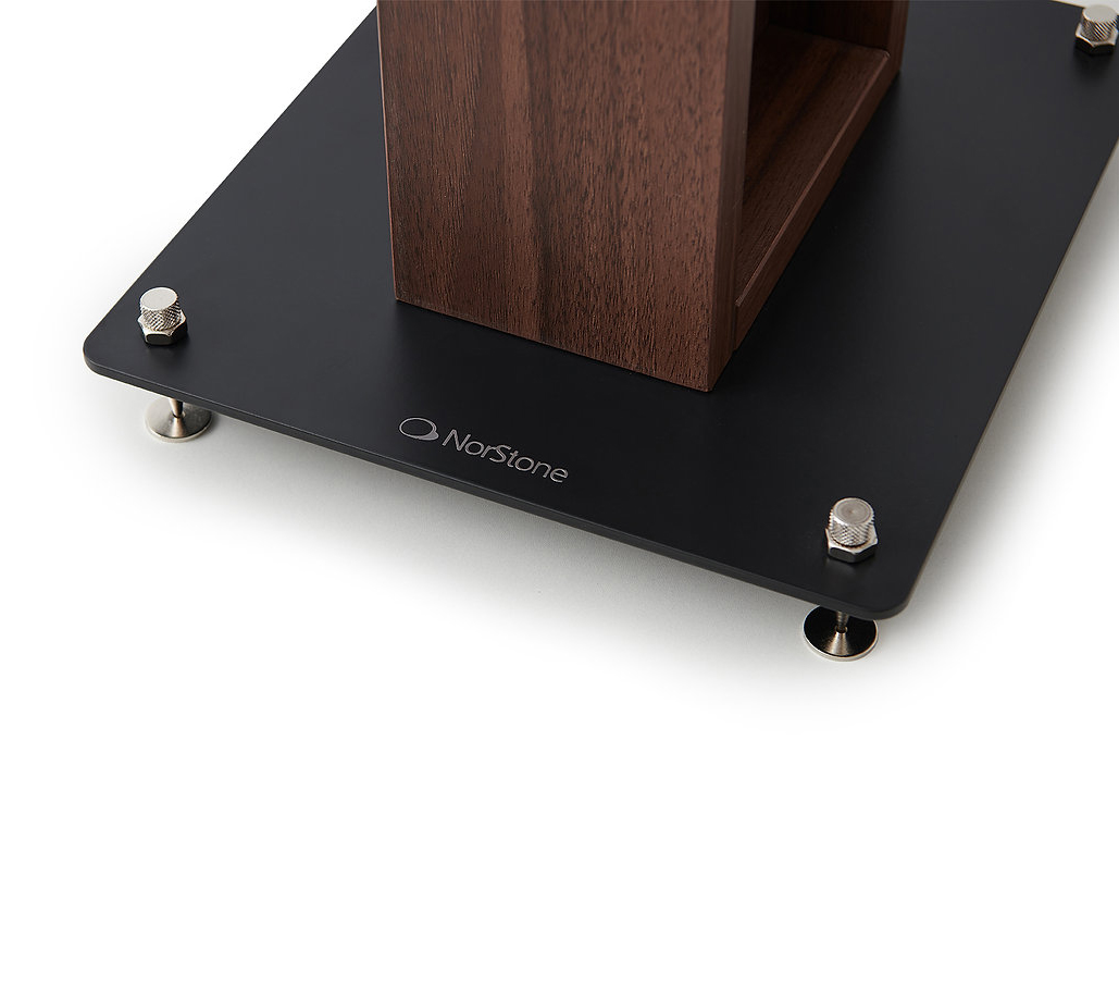 Norstone Alva Plus är ett par eleganta högtalarstativ som är tillverkade i trä och metall. De är speciellt utvecklade och framtagna för Elipson´s stativhögtalare XLS 7 alternativt mer retroinspirerade stativhögtalare från andra fabrikat. Alva Plus ser till att lyfta högtalarna till rätt lyssningshöjd, både visuellt och akustiskt, för optimala förutsättningar att nå maximal detaljrikedom och klarhet i ljudbilden. Den robusta konstruktionen i stål och metall ger inte bara en akustiskt fördelaktig grund, utan även en estetiskt tilltalande möbel som smälter in i både moderna och klassiska interiörer. Bottenplattan står på eleganta spikes i metall som reducerar vibrationer. Om man har parkettgolv så medföljer spikesunderlägg. Plus-upplagan av Alva  klarar av lite tyngre högtalare, upp till 20 kg. Topplattan i metall har måtten 20 x 23 cm, medans höjden på stativen är 66 cm + 2 cm extra när spiksen är på plats. Själva valnötsdelen har en stomme i MDF, vilket gör att de presterar bättre än många rena metallstativ, samt att man slipper fylla dem för att få bort metallklangen!
