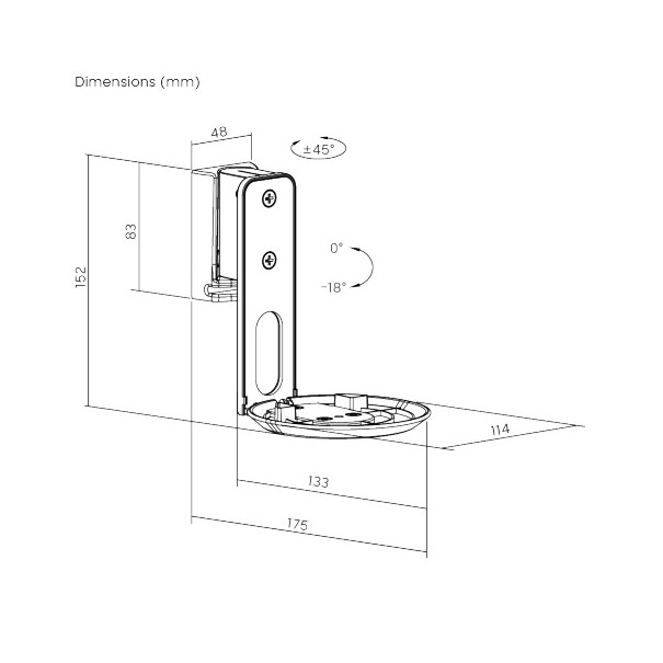 - Platsbesparande lösning som frigör yta på bänkar och hyllor medan högtalaren får optimal positionering