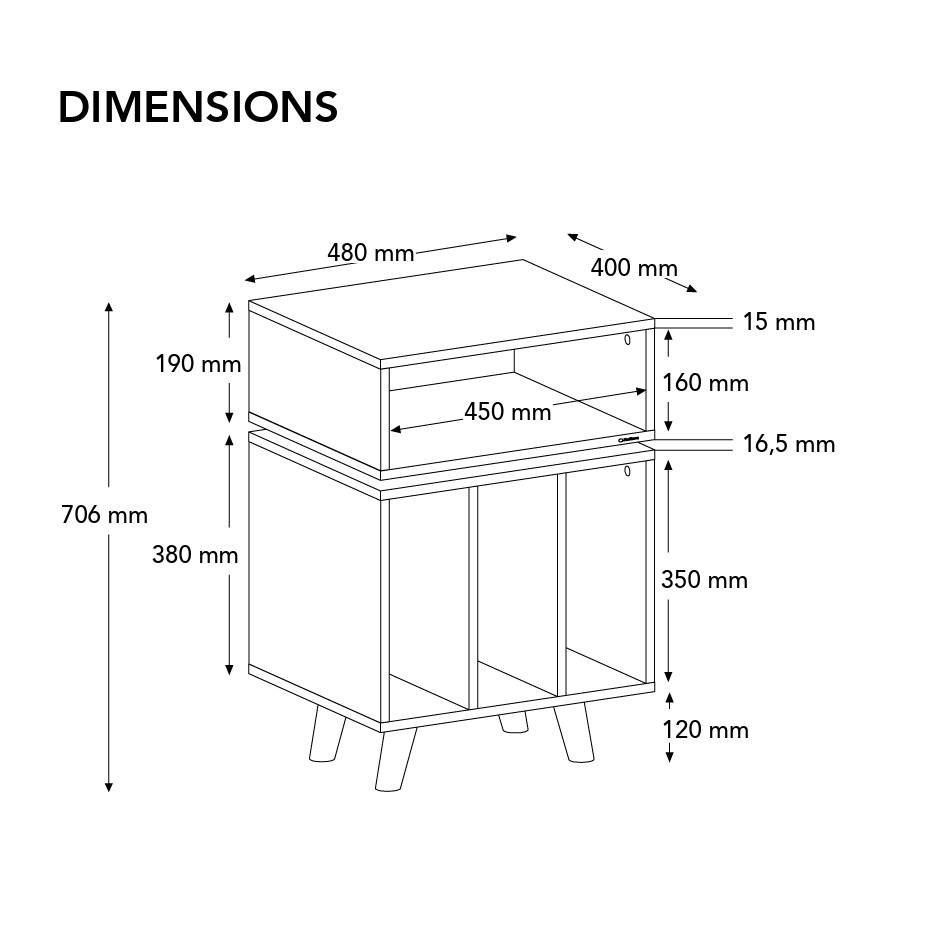 • Rymlig förvaring för ca 80 stycken vinylskivor i dedikerade fack