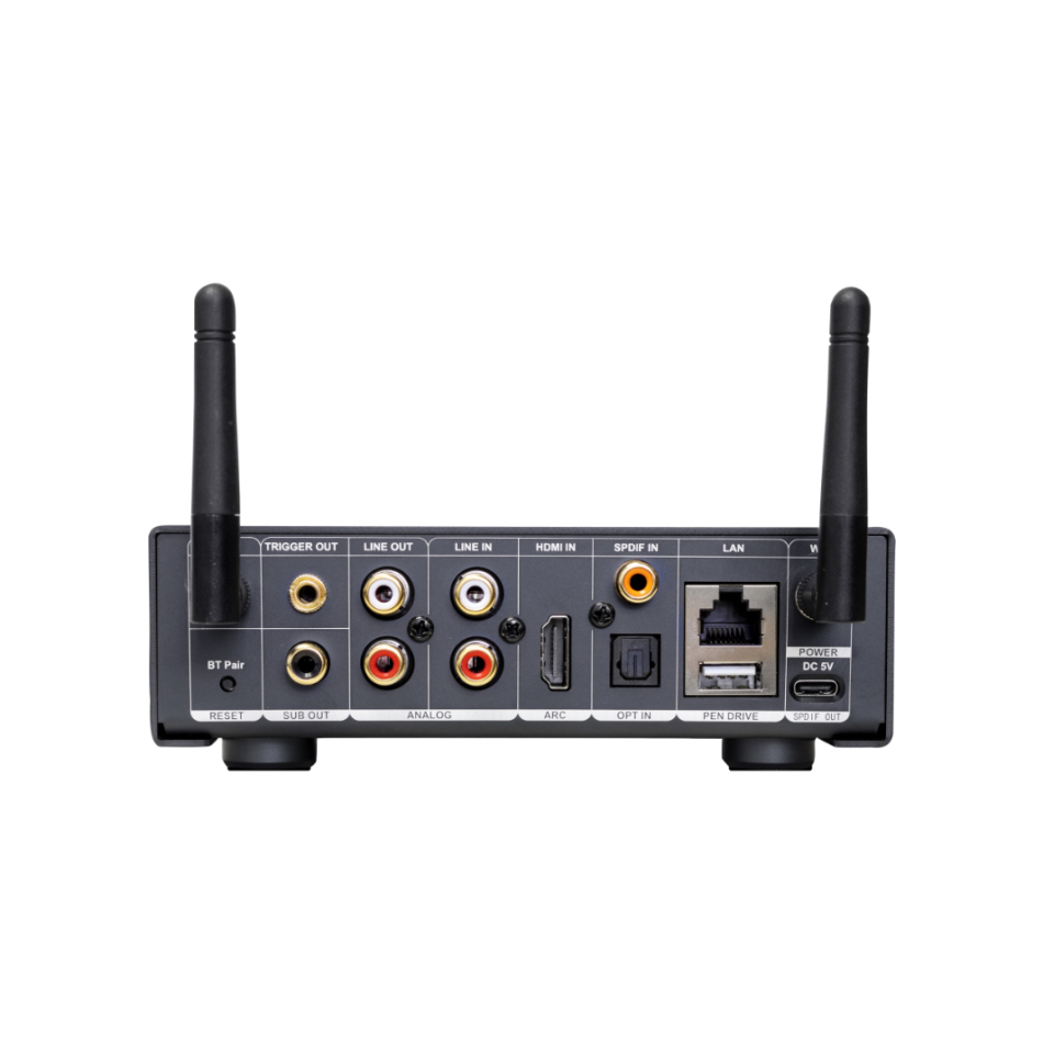 - Ethernet/WiFi med re-streaming (max 44.1 kHz ut)