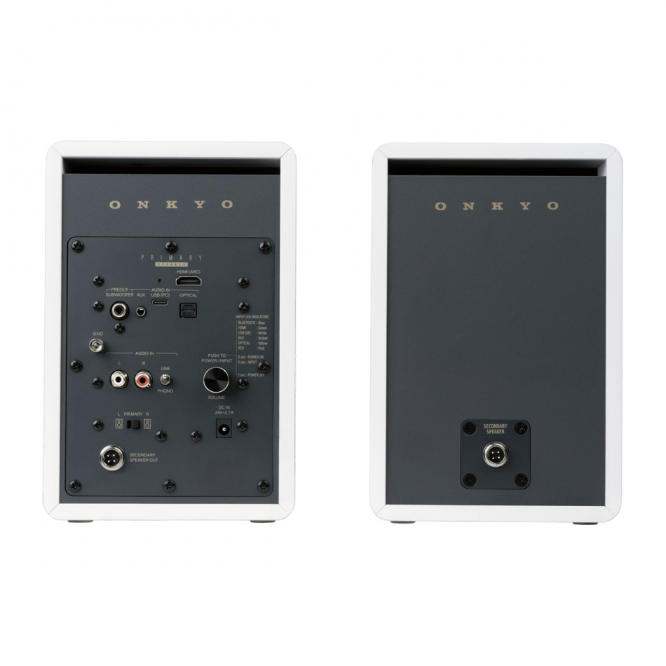 De aktiva stereohögtalarna: Onkyo GX-30ARC är ett par aktiva stereohögtalare som ingår i japanernas Creator-serie, och som förenar elegant design med genuin ljudteknisk kompetens. Man har utvecklat Creator-serien för den moderna musiklyssnaren som vill ha en komplett ljudlösning för sin platt-TV, dator eller musikstreaming. Samtidigt ger högtalarna en prägel av 1970-talet med sin Vintage-spräckliga tygfront och vinklade bordstativet i trä, som kan monteras bort helt. Med HDMI ARC och CEC-stöd behöver du bara en HDMI-kabel för att få bättre TV-ljud, och med en dedikerad subwooferutgång kan du utöka systemet med en aktiv baslåda. Högtalarelementen drivs av ett bi-ampat klass D-förstärkeri, som gör att hela konstruktionen levererar ett imponerande ljud med kontroll och klarhet. Den genomtänkta konstruktionen med vinklade bordsstativ ger optimal spridning om högtalarna placeras på en lägre TV-bänk, och ett estetiskt uttryck som gör att GX-30ARC känns lika självklar i vardagsrummet som i arbetsrummet eller sommarstugan. Resultatet är ett dynamiskt, fylligt och detaljerat ljudlandskap, som är omsorgsfullt trimmat med DSP-teknik för perfekt balans.