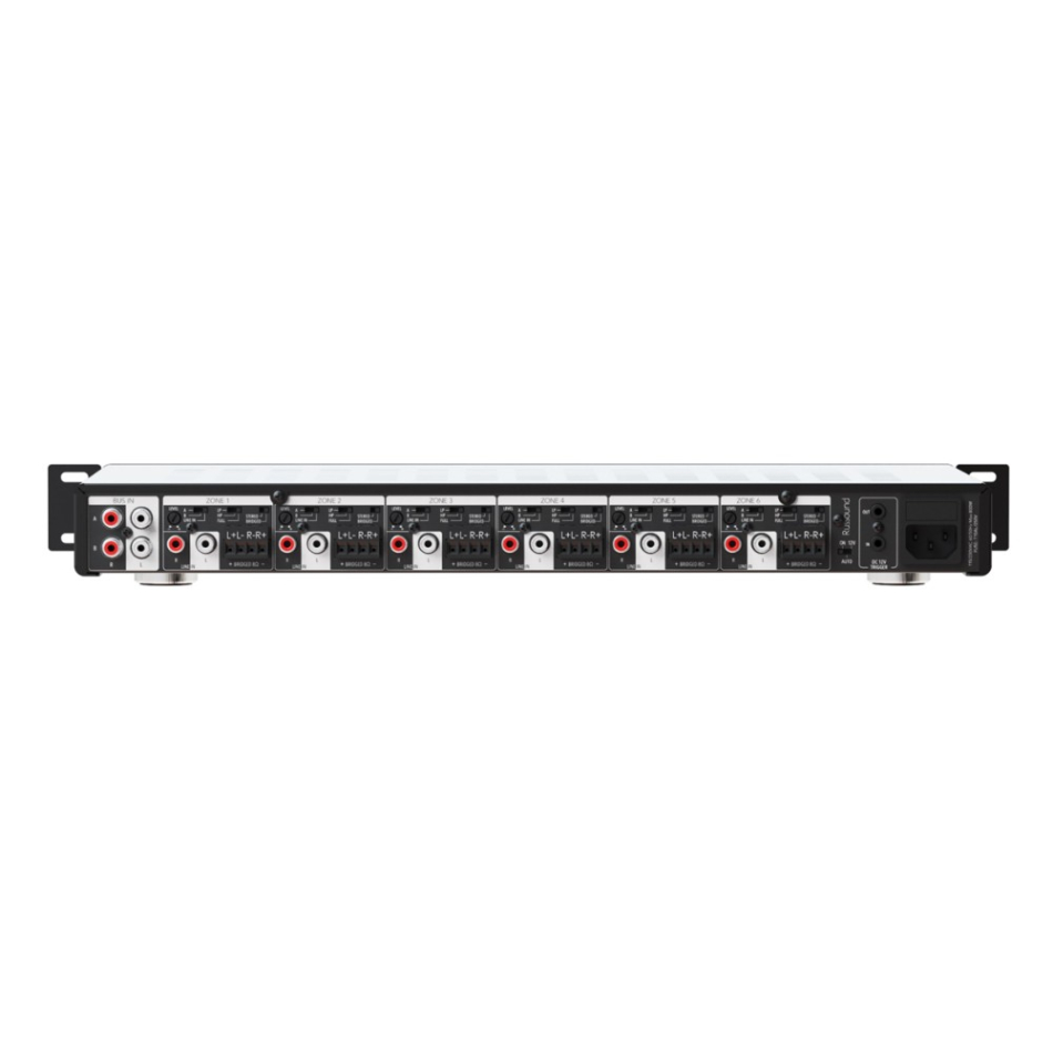 - Kan bryggas till sex kanaler på 180 Watt vardera (minimum 8 Ohms last)
