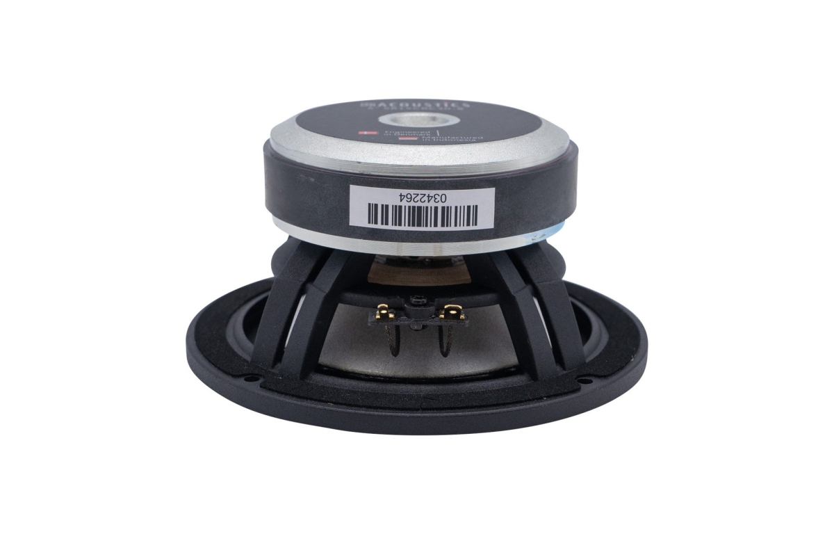 Talspolen är tillverkad i CCAW (kopparbelagd aluminiumtråd) för att hålla nere den rörliga massan, vilket förbättrar transientresponsen och dynamiken. Glasfiberspoleformaren är icke-ledande och bidrar till att minimera intern dämpning och energiförluster. Den förlängda kopparhylsan på polstycket reducerar induktansen, vilket minskar distorsion och förbättrar den elektriska kontrollen över membranets rörelser. Ventileringen i polstycket minskar termisk kompression, vilket gör att elementet bibehåller sin prestanda även vid hög belastning. Tillsammans skapar dessa detaljer en magnetmotor som är både kraftfull och finjusterad för krävande ljudåtergivning.