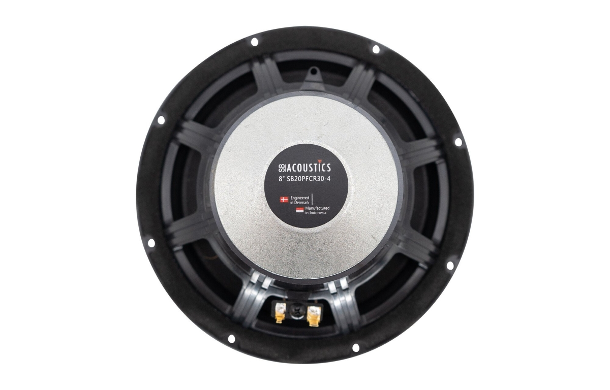SB20PFCR30-4 bygger på en gedigen teknisk grund med en kon av naturliga fibrer som är noggrant utvald för att kombinera styvhet med hög dämpning. Detta ger en ren och transparent ljudbild utan oönskade resonanser. Den mjuka gummiupphängningen är optimerad för att ge en snabb och exakt transientrespons, vilket gör att ljudet känns levande och engagerande. Det ventilerade plastchassit med förstärkningar minskar mekaniska resonanser samtidigt som det bidrar till effektiv kylning av talspolen, vilket är avgörande för att hantera hög belastning utan att kompromissa med ljudkvaliteten. Den stora spidern skapar dessutom en stabil rörelsebana för membranet, vilket förbättrar linjäriteten och minskar distorsion även vid höga utsignalnivåer.