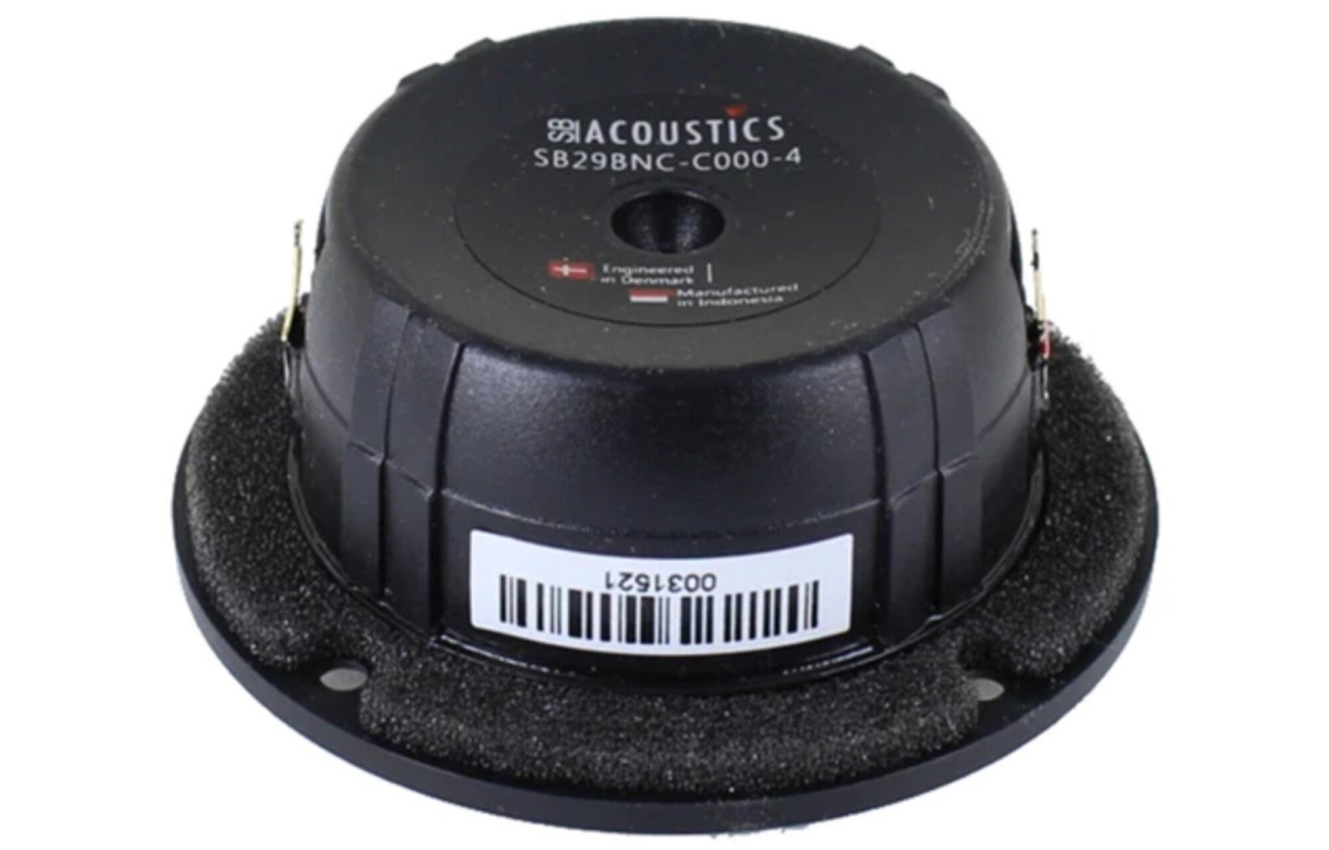 SB29BNC-C000-4 är byggd med en beryllium-dome som kännetecknas av hög styvhet och låg vikt, vilket möjliggör en mycket exakt och snabb respons i diskantområdet. Kopparkapseln på polstycket minskar talspoleinduktansen, vilket ger en rakare frekvensgång och minimerar fasförskjutningar som annars kan påverka ljudbilden negativt. Den interna tryckutjämningen och flödesresistorn bidrar till att reducera resonanser i kammaren, vilket ger en renare återgivning utan oönskade färgningar. Den kompakta neodymmotorn är optimerad för hög effektivitet och låg distorsion, vilket resulterar i en dynamisk och naturlig diskantåtergivning. Denna noggranna konstruktion gör att SB29BNC-C000-4 klarar höga belastningar utan att kompromissa med ljudkvaliteten.