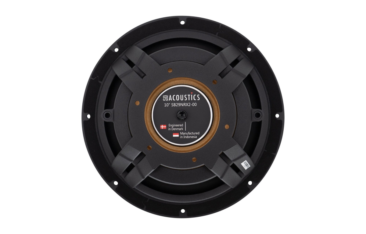 SB29NRX2-00 bygger på en intern produktion av det hårda pappersmembranet, vilket ger en stabil och exakt kolvrörelse med minimal distorsion. Den gjutna aluminiumkorgen är både lätt och styv, vilket minimerar oönskade resonanser och kompression vid höga ljudtryck. Gummiupphängningen är medelhård och noggrant utformad för att ge en balanserad kombination av linjäritet och dynamiskt svar. Denna konstruktion säkerställer att basen inte bara blir djup och fyllig, utan även kontrollerad och detaljrik. Tillsammans bidrar dessa komponenter till en passiv radiator som integreras sömlöst i avancerade högtalarsystem.