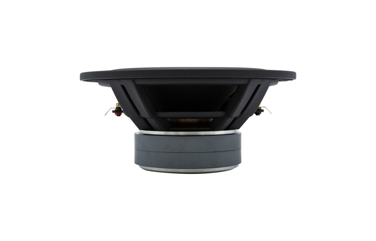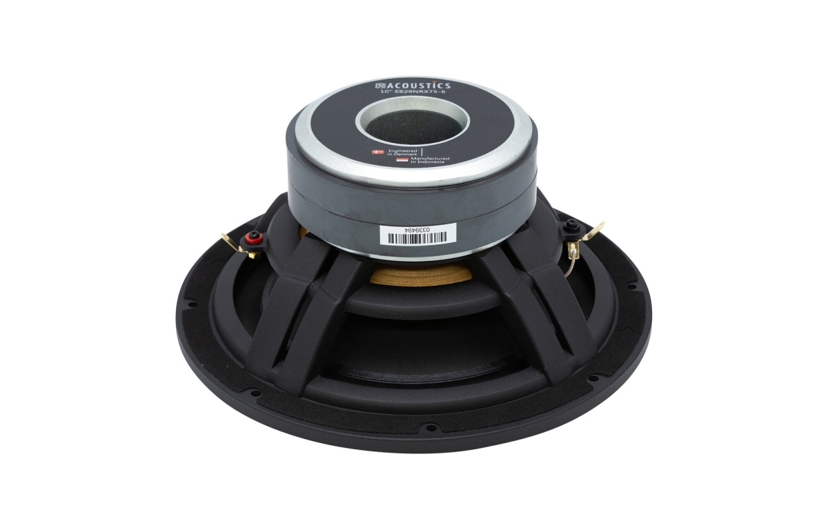 Talspolen på 3 tum i koppar är dimensionerad för att hantera höga effekter utan att överhettas, vilket ger SB29NRX75-6 en stabil och konsekvent prestanda även vid längre lyssningssessioner på hög volym. Den långa talspolehöjden och luftgapet bidrar till stor linjär rörelsefrihet (22 mm p-p), vilket är avgörande för djup basåtergivning utan distorsion. Gummiupphängningen är noga utvald för att ge låg mekanisk dämpning och bibehålla hög dynamisk linearitet, vilket gör att basen upplevs som både snabb och välkontrollerad. Kombinationen av dessa tekniska lösningar gör att passiv radiatorn smidigt integreras i systemet och levererar en naturlig och kraftfull basåtergivning.