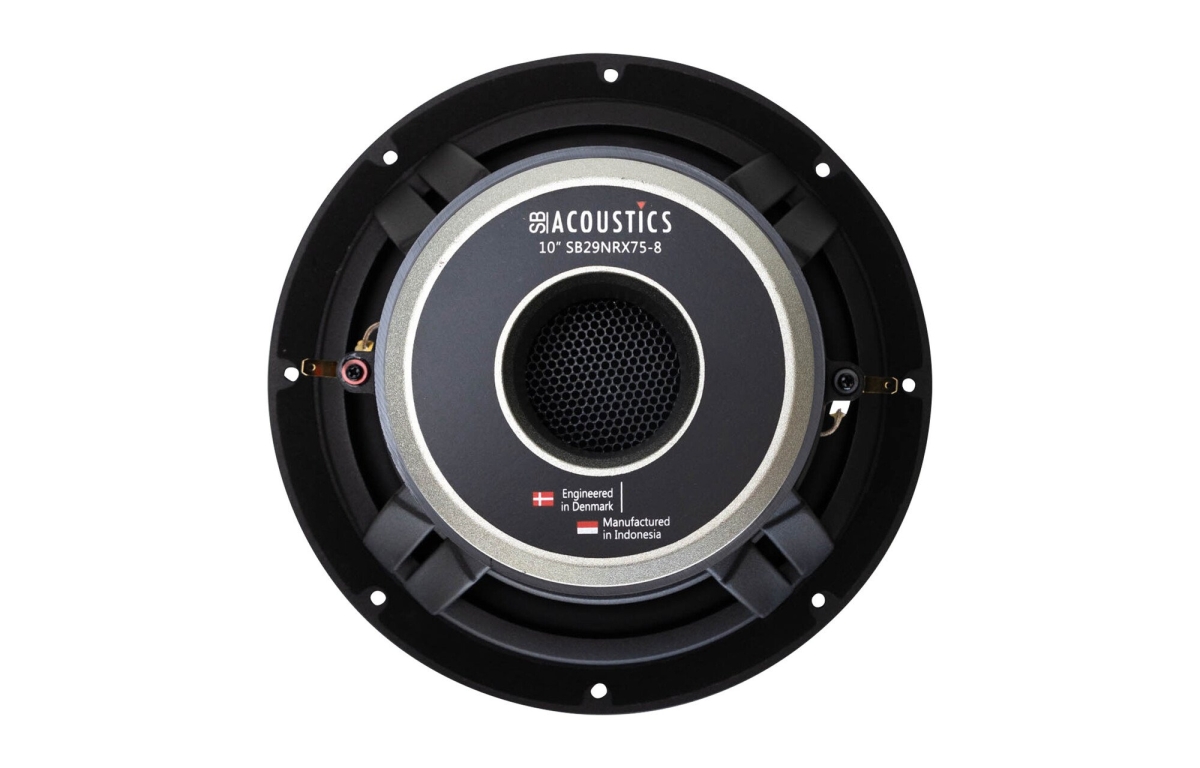 SB29NRX75-8 bygger på en gedigen och genomtänkt konstruktion där varje komponent är optimerad för maximal prestanda. Den styva Norex-kon är tillverkad i pappersfiber med hög intern dämpning, vilket ger en naturlig och transparent ljudbild med minimal resonans. Aluminiumkorgen är ventilerad och gjuten för att kombinera mekanisk stabilitet med effektiv luftflödeshantering bakom kon och talspole. Detta säkerställer att elementet klarar höga belastningar utan värmeuppbyggnad och kompression, vilket är avgörande för att bibehålla ljudkvaliteten vid höga volymer och långvarig användning.
