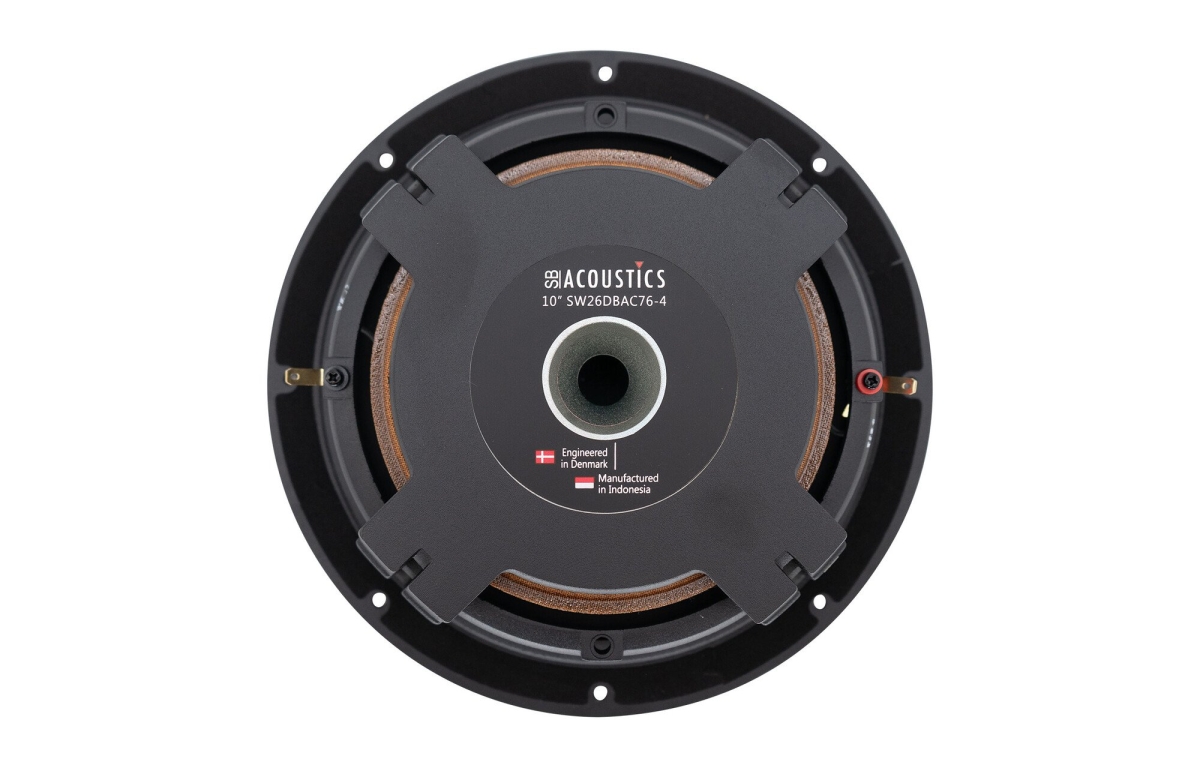 SW26DBAC76-4 bygger på en patenterad shallow-design som innebär en långslagig talspole och en aluminiumkon med dubbel styvhet, vilket ger en stabil kolvrörelse även vid höga utslag. Den ventilerade gjutna aluminiumkorgen bidrar till låg kompression och effektiv kylning, vilket ökar både dynamik och livslängd. Kortslutningsringarna i motorn minskar magnetisk distorsion och bidrar till ett rent basljud. Den non-ledande glasfiberspoleformaren minimerar intern dämpning, vilket ger en mer öppen och naturlig ljudbild. Sammantaget är konstruktionen optimerad för att leverera kraftfull och exakt bas i en kompakt form.