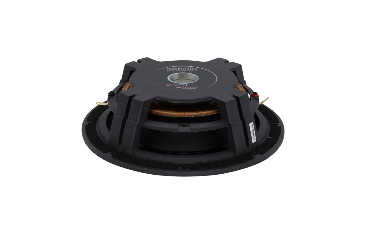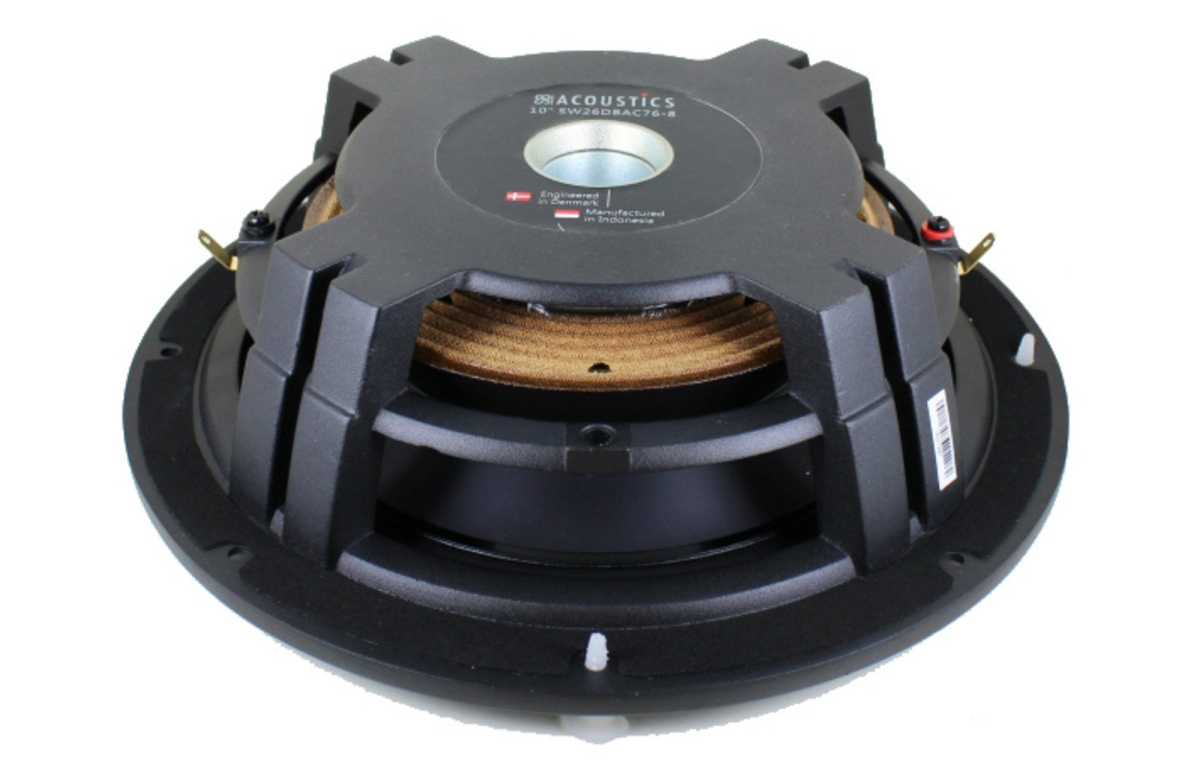 Motorsystemet i SW26DBAC76-8 är designat för att leverera kraftfull och ren bas utan onödig distorsion. Kortslutningsringarna i motorn reducerar magnetisk förvrängning och gör att talspolen kan röra sig linjärt även vid höga utslag. Den 3" kopparlindade talspolen är dimensionerad för att klara höga effekter samtidigt som den har en effektiv kylning som förhindrar överhettning vid långvarig belastning. Denna kombination säkerställer att subwoofern kan spela högt och dynamiskt med bibehållen klarhet och kontroll, vilket är avgörande för en trovärdig basåtergivning.