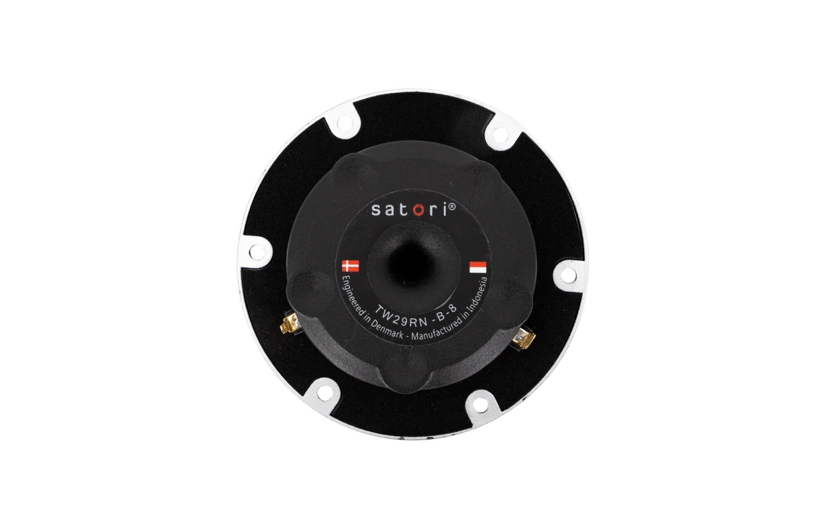 Motorn i TW29RN-B-8 är en högmättad neodymiummotor med en T-formad polbit, vilket är en design som minskar magnetisk distorsion och därmed förbättrar ljudets renhet. Dubbla kopparringar runt talspolen bidrar till att hålla induktansen låg och fasförskjutningen minimal, vilket säkerställer att diskanten spelar exakt och stabilt över frekvensregistret. Den gjutna aluminiumkammaren är icke-reflekterande och har optimerad intern dämpning, vilket förbättrar transientresponsen och ger en mer naturlig återgivning. Det flödesoptimerade och grunda magnetsystemet är noga anpassat för att ge en optimal koppling till bakre kammaren, vilket också bidrar till en jämn och kontrollerad ljudkaraktär.