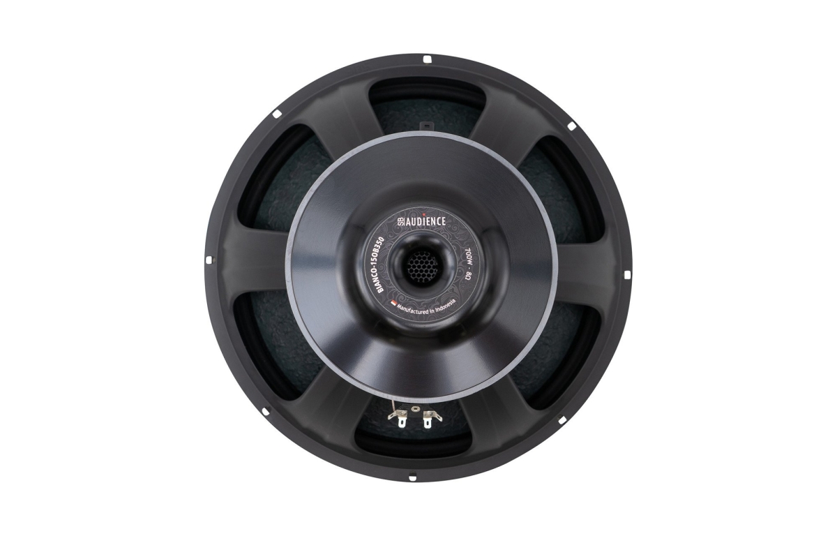 SB Audience Bianco-15OB350 kännetecknas av sin gedigna och genomtänkta konstruktion. Konen är tillverkad av ett proprietärt pappersmaterial som utvecklats internt och optimerats för att ge en balanserad och naturlig ljudåtergivning med låg resonans. Den ventilerade polstycket bidrar till att minska kompressionen som ofta uppstår vid höga ljudtryck, vilket säkerställer att basen förblir kraftfull och distinkt även vid höga volymer. Röstspolen är formad av glasfiber med minimal dämpning, vilket optimerar effektöverföringen och värmehanteringen för att leverera stabil och pålitlig prestanda över tid. Den robusta ramen i stansad stål bidrar till elementets mekaniska stabilitet och långvariga hållbarhet.