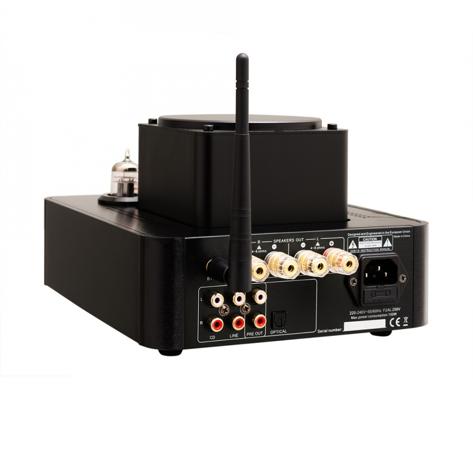 Mycket av dess magik i återgivningen kan vi tacka de två förstklassiga amerikanska 5BK7 rören för, som i förstegssektionen agerar som ett buffertsteg. I utgången finner vi STMicroelectronics TDA7296-transistorer samt en kondensatorbank på 2x50V/3300uF.