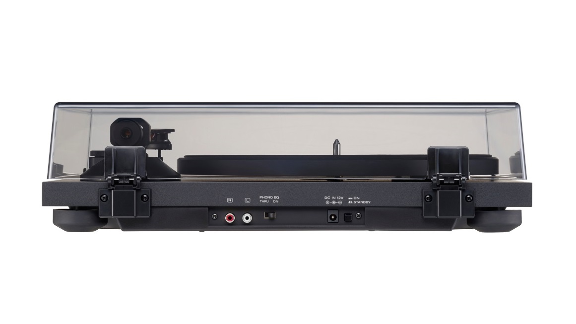 På baksidan finns ett reglage, där du kan välja om du vill spela skivorna via det inbyggda RIAA-steget, ifall man saknar detta i den mottagande enheten. Har du dock ett externt RIAA-steg med en högre ljudkvalitet, så kan spelarens förbikopplas.