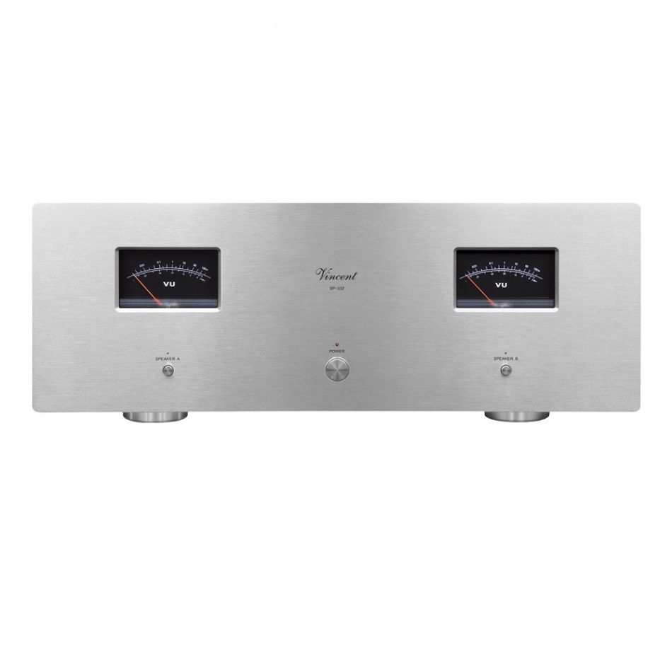 SP-332 från tyska Vincent är den naturliga sparringpartnern med försteget SA-32. Grunden till dess konstruktion ligger i SP-331, som har genomarbetats och optimerats i samtliga kretsar. VU-mätarna är ett inslag taget från deras jubileumsmodell SP-20 Anniversary. Detta ger konstruktionen ett välkommet facelift, och en rolig detalj är att man kan justera färgbelysningen till VU-mätarna. Välj mellan blå, grön, röd eller vit genom en switch på baksidan.