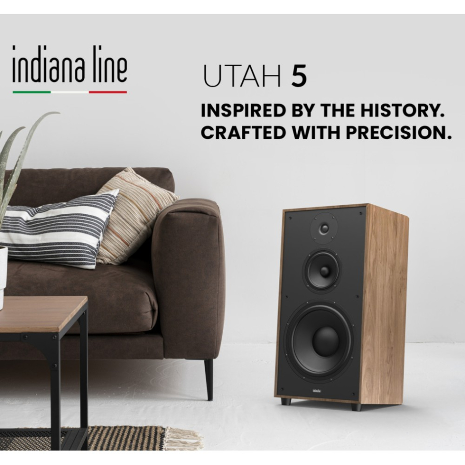 Golvhögtalarna: Indiana Line Utah 5 är en spelglad och uttrycksfull golvhögtalare som tydligt visar hur klassisk formgivning och modern högtalarkonstruktion kan mötas på ett ovanligt lyckat sätt. I Utah-serien har Indiana Line hämtat inspiration från retroeran, men fyllt uttrycket med dagens teknik och en musikalisk presentation som lämpar sig lite extra bra för rock, elektroniskt och hip hop. Utah 5 kombinerar en 3-vägskonstruktion med hög känslighet på 94 dB, vilket gör den väldigt effektiv att driva och kan fungera osedvanligt bra med rörförstärkare. Vill man dock ha maximal kontroll och volym från 10" baselementet så krävs en effektgladare förstärkare av transistortyp. Att finna mer spelglada högtalare i prisklassen är riktigt svårt! På kabinettets undersida finner vi dubbla basportar som ger mer energi till återgivningen, med en god spridning längs golvet. Resultatet är ett ljud som känns direkt, öppet och generöst, med en varm och närvarande mellanregisteråtergivning, en rytmisk och fyllig bas samt en diskant som bidrar med luft utan att bli påträngande. För den som söker en högtalare med personlighet, hög underhållningsfaktor och förmåga att leverera stort ljud även med modest elektronik, är Utah 5 ett mycket intressant val.
